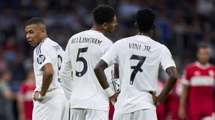 皇马(4231):库尔图瓦/劳尔-阿森西奥、赫伊森、吕迪格、霍安-马丁内斯/琼阿梅尼、巴尔韦德/罗德里戈、贝林厄姆、维尼修斯/姆巴佩