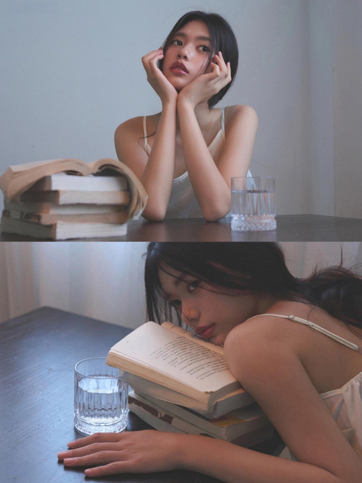 比如要抒发“午后慵懒”,不错聘请靠窗的书桌,用软光营造暖而柔的氛围,指令模特以随便的姿态倚靠书堆——侧脸贴在书页上、手臂当然搭在桌面,致使不错让她半阖着眼,仿佛下一秒就要睡去;书堆的聘请不错是厚度不一的古书,翻卷的页角会让“慵懒”更有果然感。
