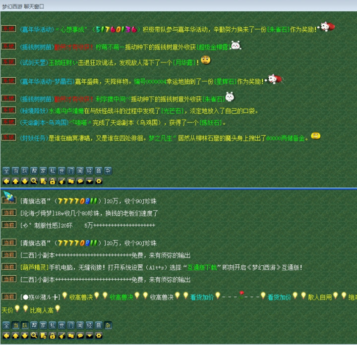 率先,咱们处罚第一个贫困,若何选区。现在我只发现了山东三区蓬莱岛是这么的烟花区,区里总计玩家岂论是单开依然五开,岂论89、129依然175大佬,皆有一个共鸣,那即是撑捏世界营业和合伙!对,你没看错,散东谈主皆心爱合伙,地煞除了王者周,四星地煞合伙每东谈主30万,五星地煞合伙每东谈主60万,天罡一口价合伙每东谈主40万,天退亦然这个价钱。这就处罚了散东谈主打符站街一天杀不到一个世界被劝退的情形。